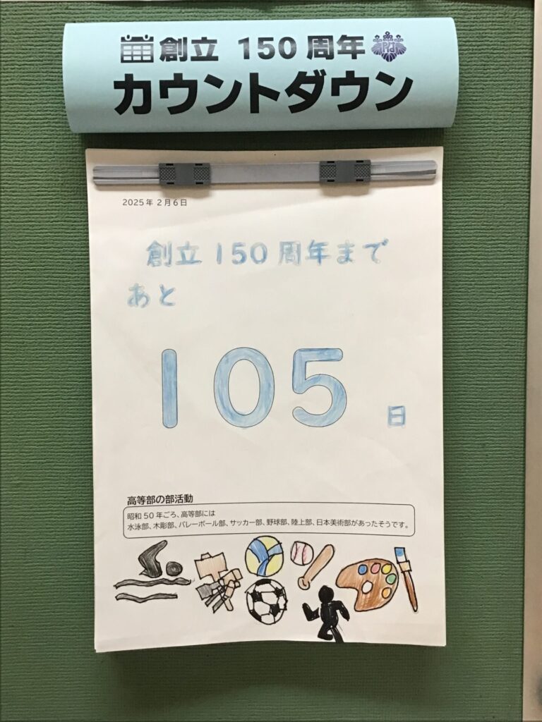 行事委員会が,創立150周年を記念し,『カウントダウンカレンダー』の企画を考えました。