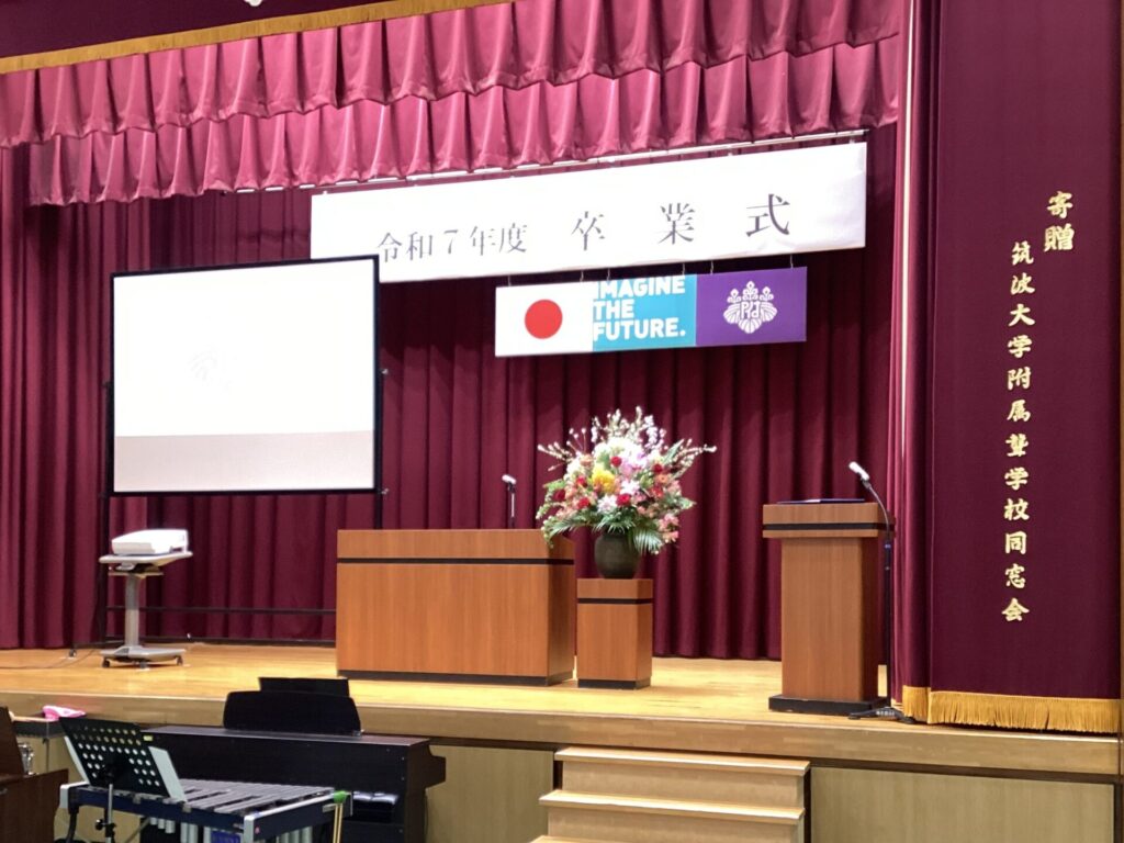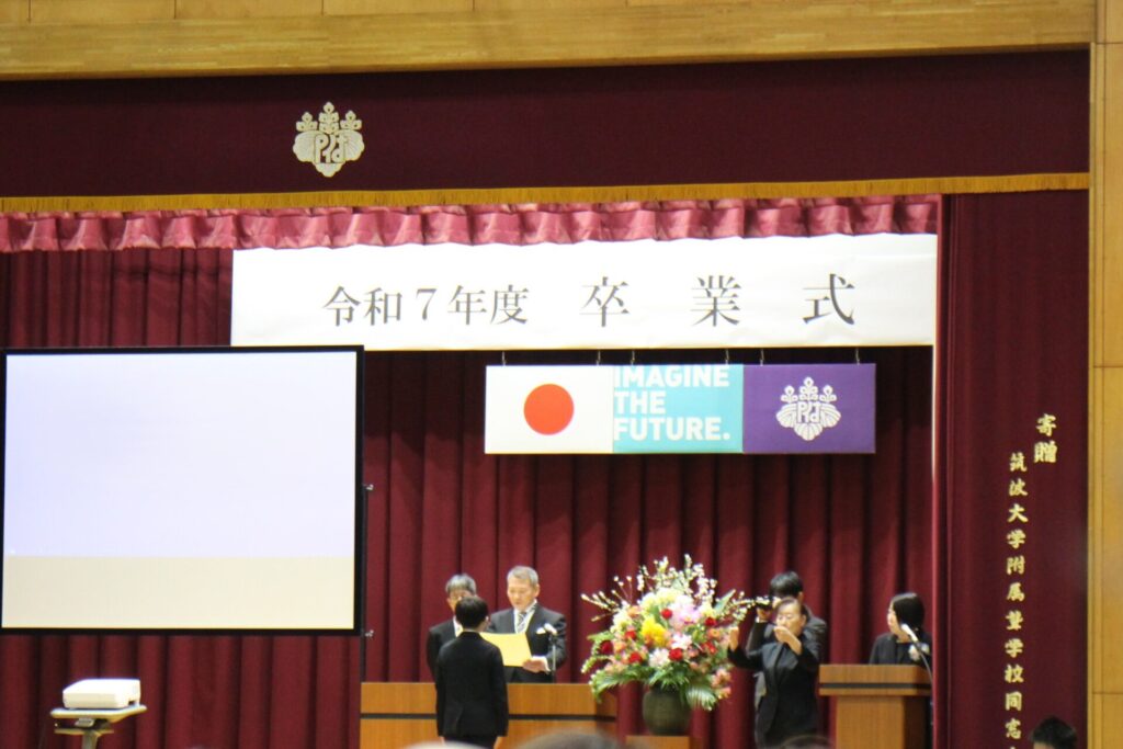 式典は厳かな雰囲気の中で始まり、中学部生徒の指揮のもと、小学部児童が心を込めて校歌を演奏しました。会場には、卒業生・修了生のこれまでの歩みを思わせる温かな空気が広がりました。