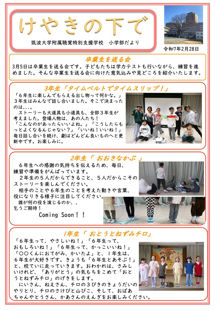 令和6年度 小学部だより『けやきの下で』を掲載しております。