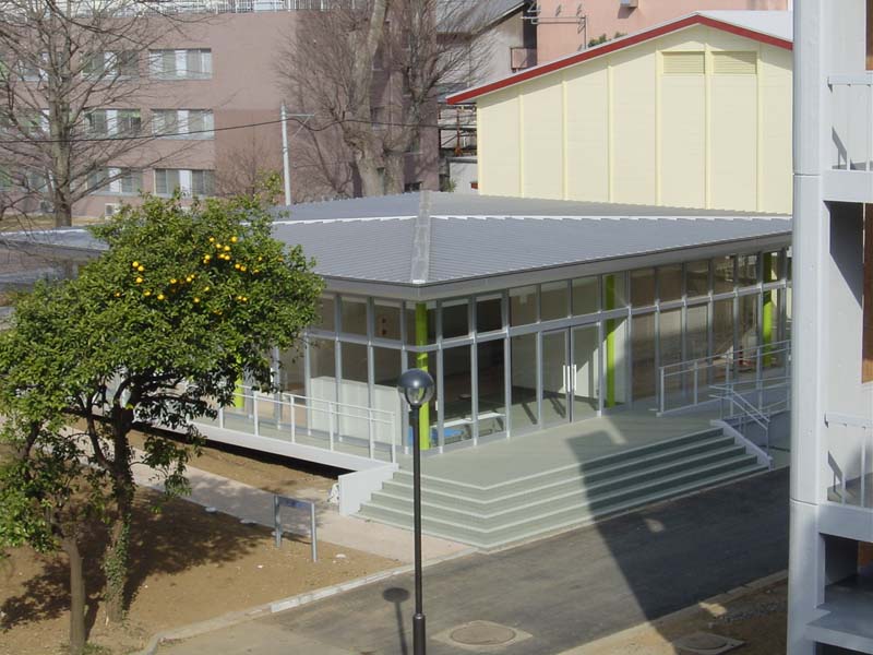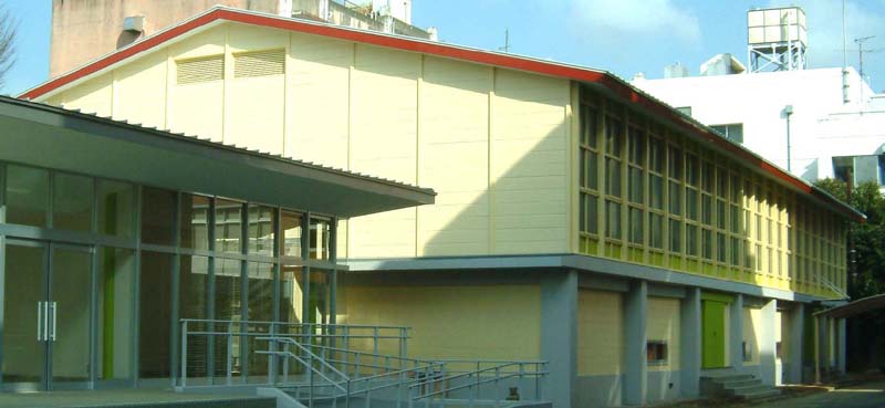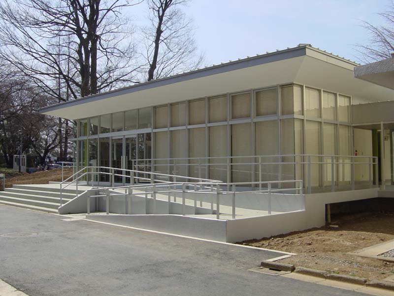 | 体育館管理棟 | 管理棟のスロープ | 体育館の全景 |