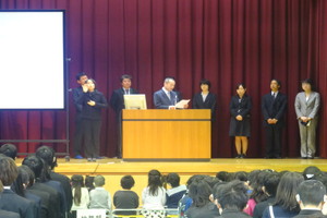 春を思わせる暖かな日ざしのもと、 平成26年度修了式・退任式が行われました (3月20日) |
