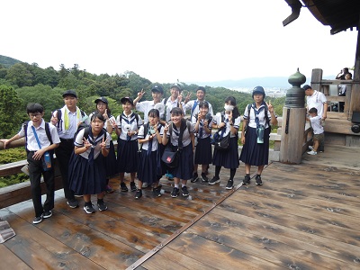 3日目は清水寺の見学と清水焼絵付け体験を行いました。最終日ということで,茶碗坂から清水寺に向けて坂を登っている間は,口数も少なく疲れた様子でしたが,清水の舞台から京都の街並みを見て,疲れも吹き飛んだようで「すごい,京都タワーが見える」などと話していました。清水の舞台に立つと「どうして床が傾いているのかな?」という声も聞かれ,実物を見ることで新たな気付きや疑問をもつことができました。