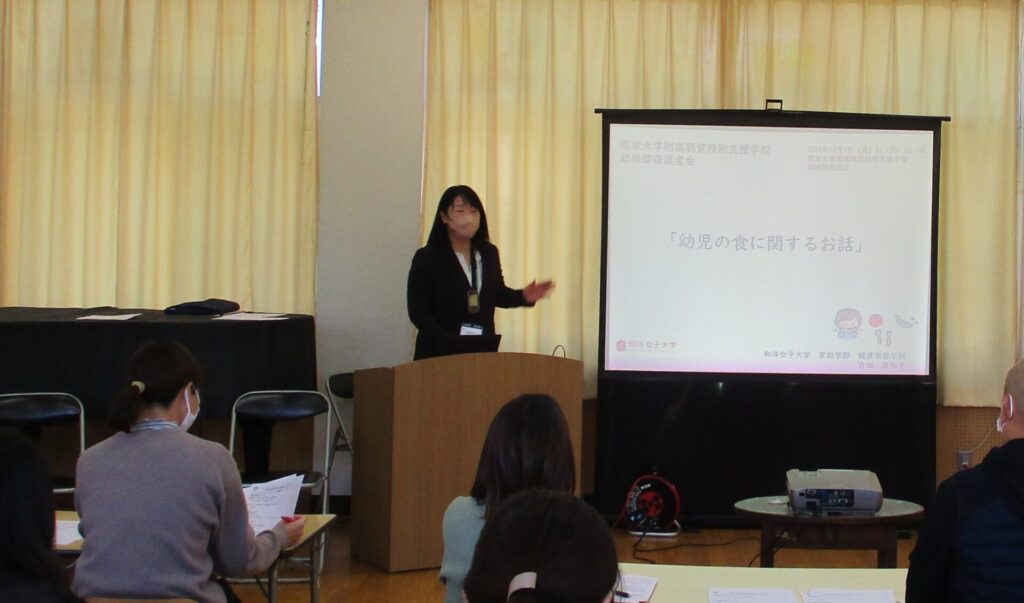 幼稚部では、年1回保護者向けの食に関する講演を行っています。今年度は、和洋女子大学の吉田真知子先生をお招きし、「幼児の食に関するお話」を伺いました。