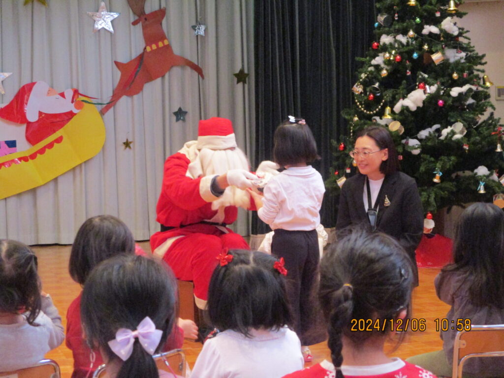 ひとりずつ、プレゼントをもらいました。サンタさんと握手もしました。