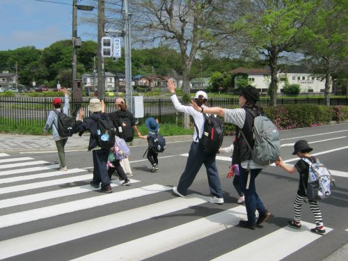 「手を挙げて わたるよ。」3年生は交通安全教室のことを思い出しながら、横断歩道も渡りました。道の途中に咲いている春の花を見つけては「何の花かな?」とやりとりしながら目的地まで歩いていきました。