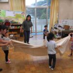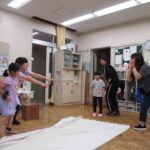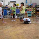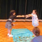 紙芝居「おりひめとひこぼし」の読み聞かせのあと、即興で台詞も動きも思いのままに役になりきって遊び、何度も劇ごっこをして遊びました。