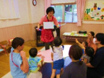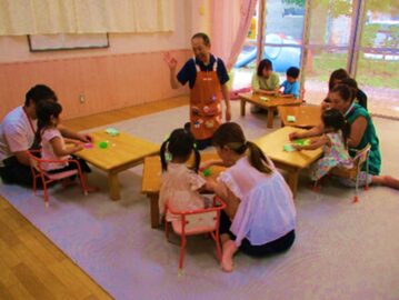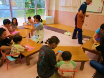 1歳児グループでは、とんぼの羽やお花を親子で楽しくぺたぺた貼りました。できたら嬉しそうに見せてくれる子どもの姿もあり、みんなすてきな作品ができました。