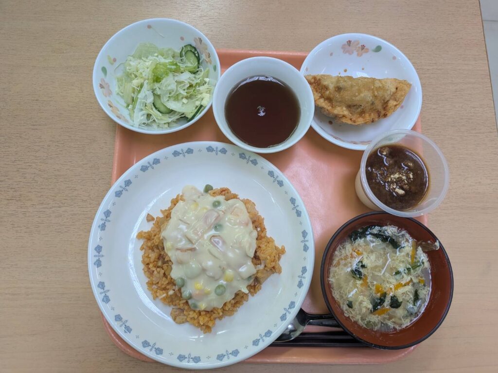 昼食は喜んでもらえるようにと、盲学校の舎生が考えてくれたメニュー(チキンライスホワイトソースかけなど)が振る舞われました。食事中の何気ないコミュニケーションが、心の距離をぐっと近づけるきっかけになりました。
