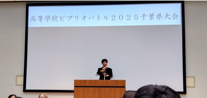 2025年10月25日(土)、千葉県の海浜幕張にある千葉県総合教育センターで全国高等学校ビブリオバトル2025千葉県大会が開催されました。ビブリオバトルは、1人ずつ順番におすすめ本をプレゼンテーション式で紹介していく大会です。本校代表として出場した高等部2年の関武瑠さんは『人間みたいに生きている』(佐原ひかり著)を紹介して決勝に進み、ファイナリスト4人の中から関さんの紹介本がチャンプ本に選ばれました。