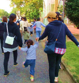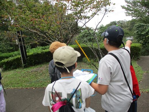 オリエンテーリングでは、班ごとに協力して、地図を片手に歩き回り、栗の木を探したり、葉っぱのにおいをかいだり、雲をスケッチしたりしました。落ち葉の上を歩いたり、ドングリを拾ったり、柿の実が色づいているのを発見したりして、秋を満喫しました。