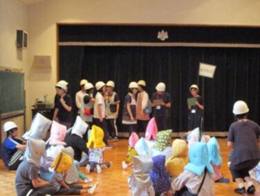 子どもたちは先生から、地震が起きたら物が落ちてきて危ないから、まずは頭を守ることが大切だと聞きました。