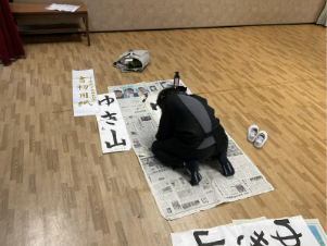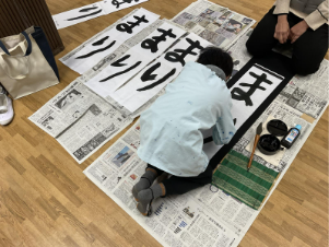静まりかえった会場には、紙と筆が擦れる音が響きました。新しい一年。全神経を指先に集中させて書き上げる姿には、これからの成長を期待させるものがあります。