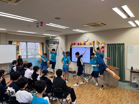 先生方も教科ごとに自己紹介を行い,教科にちなんだパフォーマンスで会場を盛り上げました。