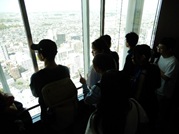 最寄りのバス停や国府台駅、病院などを見て回りながら、生活に必要な場所を一つひとつ確認しました。途中には、地上150メートルから景色を楽しめる展望台にも立ち寄り、みんなで景色を眺めるひとときもありました。