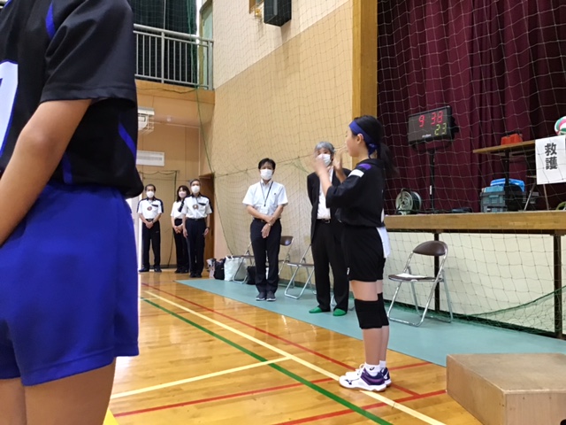 開会式では,本校の1年の生徒が選手宣誓を務めました。そして,いよいよ1試合目,都立立川学園との試合です。序盤から相手の強いサーブに圧倒され,力を出し切れないまま0-2で敗れてしまいました。2試合目は都立中央ろう学校と戦いました。サーブで奮闘しましたが,相手の丁寧なプレーに返され,波にのれないまま0-2で敗れてしまいました。2連敗してしまい,生徒も落ち込んでいましたが,3試合目に審判を担当した試合では,審判員の方からラインジャッジを褒められ,チームとしてグリーンカード(フェアプレーを称賛するカード)をいただくことができました。