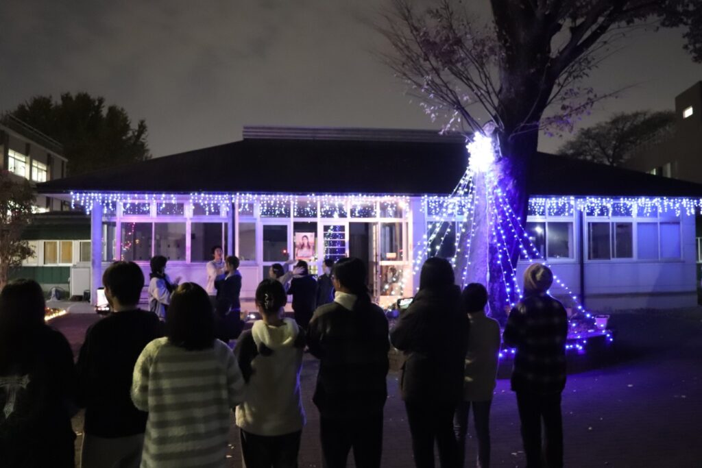 役員と寮長を中心に、全員でカウントダウンを行い、イルミネーションが一斉に灯った瞬間には歓声が上がりました。