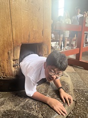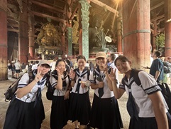 東京駅に集合し,いざ新幹線で京都へ。京都駅で乗り換え,奈良の見学に向かいました。駅を出るとたくさんの観光客,そしてたくさんの鹿に驚きました。東大寺では「穴くぐり」に挑戦。学業成就を願い,無事にくぐることができました。夜は京都タワーを見学。夜景を楽しみました。