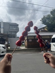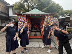 この日は1日グループ行動日です。グループごとに見学先を決め,電車やバスを使って見て回ります。祇園では食べ歩きをしたり,寺院では御朱印集めをしたりと,それぞれが京都を満喫しました。