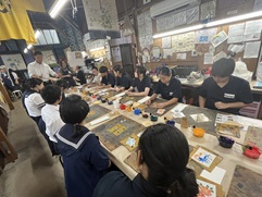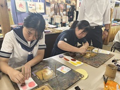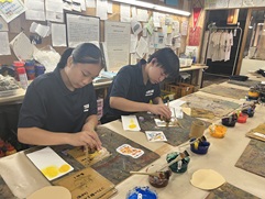 お世話になったホテルの方々へ挨拶し,京友禅体験工房「丸益西村屋」へ。友禅染めを体験させてもらい,がま口財布を作りました。二条城を見学する予定でしたが,台風の接近にともない,予定を繰り上げて早めに京都駅へ。しかし,乗る予定の新幹線がなかなか動かず,3時間ホームで待機。ハプニングもありましたが,無事に東京へ戻ることができました。