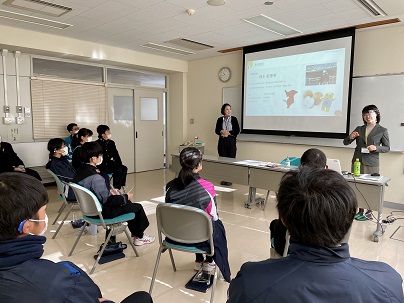 12月14日(水)に技術・家庭科の特別授業を行いました。中学2年生の学習内容である「持続可能な食生活」について考えるきっかけとして,八千代エンジニヤリング様と増一屋合同会社様から講師をお招きし,授業をしていただきました。