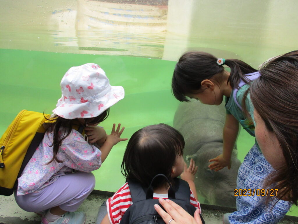 ガラス越しにカバに触れました。近くで見られて、子どもたちは大喜びでした。