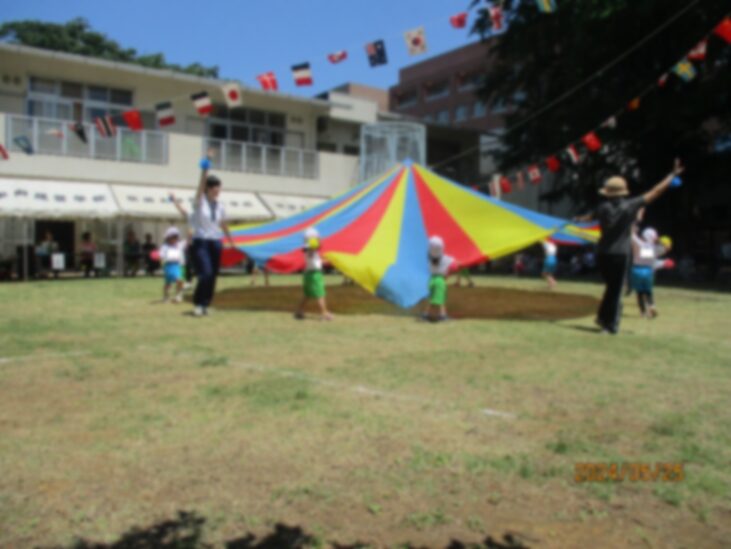 園庭と空にきれいなパラバルーンの花が咲きました。